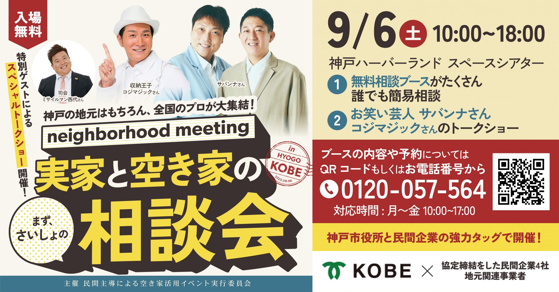 9月6日(土)には、ハーバーランド(神戸市中央区)で、空き家に関する相談会を開催。会場では専門家による個別相談のほか、事例紹介やトークイベントも行われ、身近な事例や解決のヒントに触れる機会となりそうです。