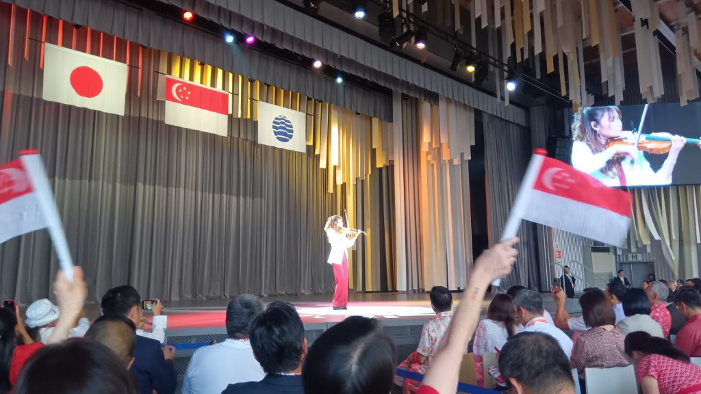 ドリーム・スフィア(夢の球体)と呼ば れるシンガポールパビリオンの来場者数は150万人を突破。
