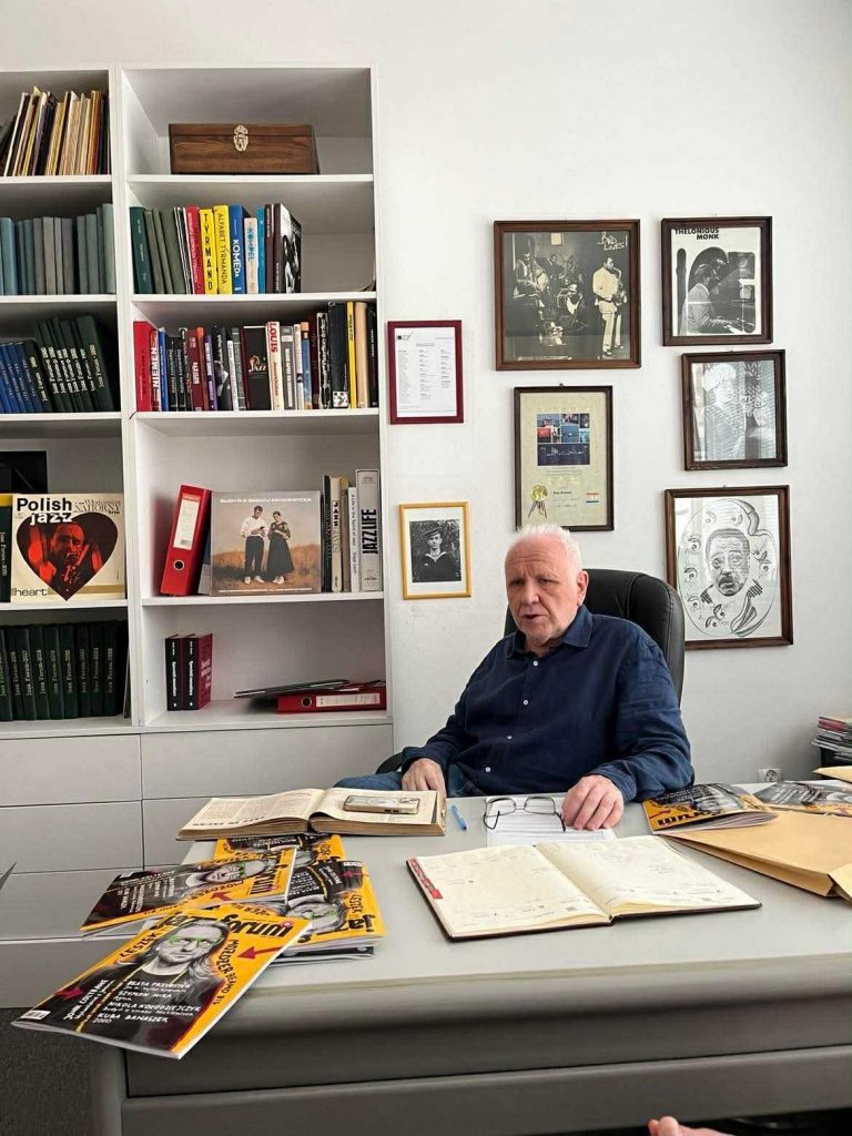 編集長のパヴェウさんはポーランドジャズの生き字引のような存在。Jazz Forum自体の歴史はもちろん、Miles Davisが出演した1983年のJazz Jamboree(ヨーロッパ最古参のジャズフェス)のことやその時ご本人にインタビューしたことなど、ポーランドジャズにまつわるあれこれを、日本から来る我々のために紹介。渡辺貞夫さんが事務所を訪れたときの写真も用意してくれていました。