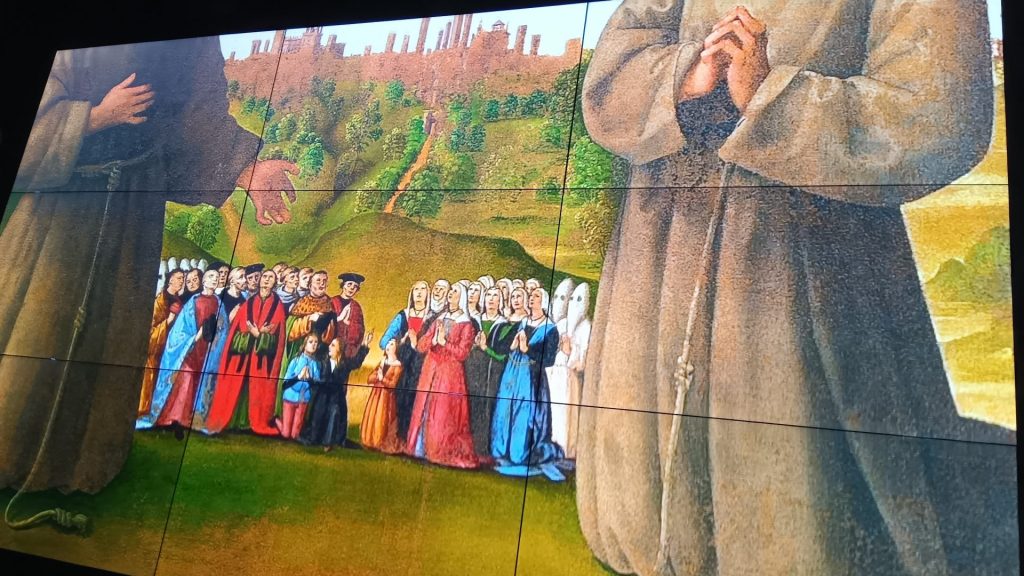 『正義の旗』は、聖ベルナルディーノ信徒会がペルージャの街を行進する際の旗(ゴンファローネ)として依頼したもの。