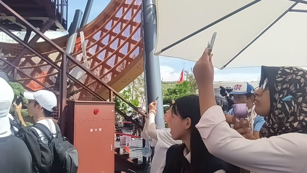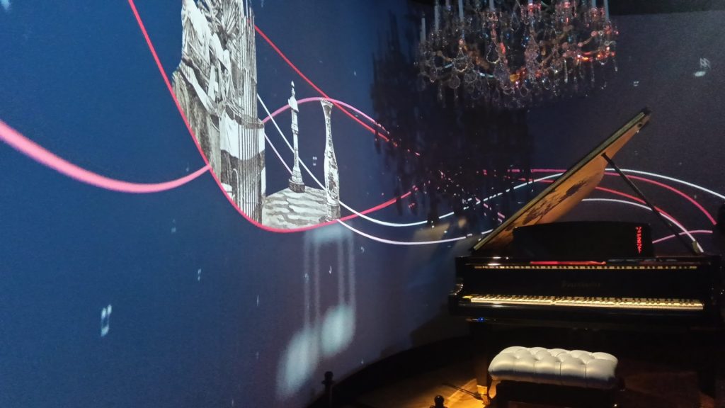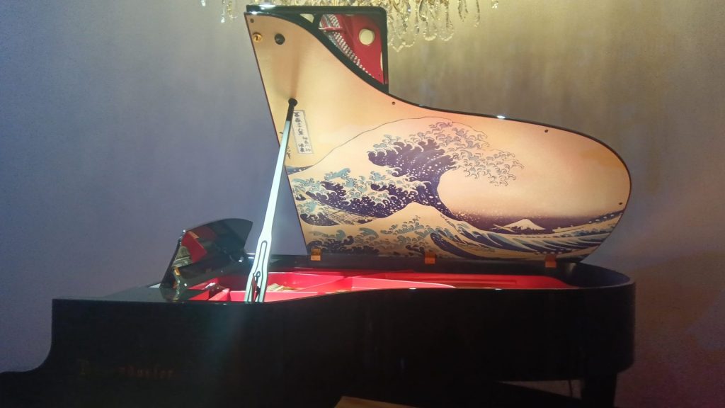 オーストリアパビリオンは、音楽の都・ウィーンのイメージそのまま、「未来を作曲」をテーマに掲げる。デジタル技術と音楽を融合させた展示、明治天皇に献上されたピアノ(展示は同型のレプリカ)、豊臣時代の大阪城下を描いた「豊臣期大坂図屏風」が見どころで、多くの来場者でにぎわい、時間によっては長蛇の列も。そんな待ち時間の“サプライズ”だった。