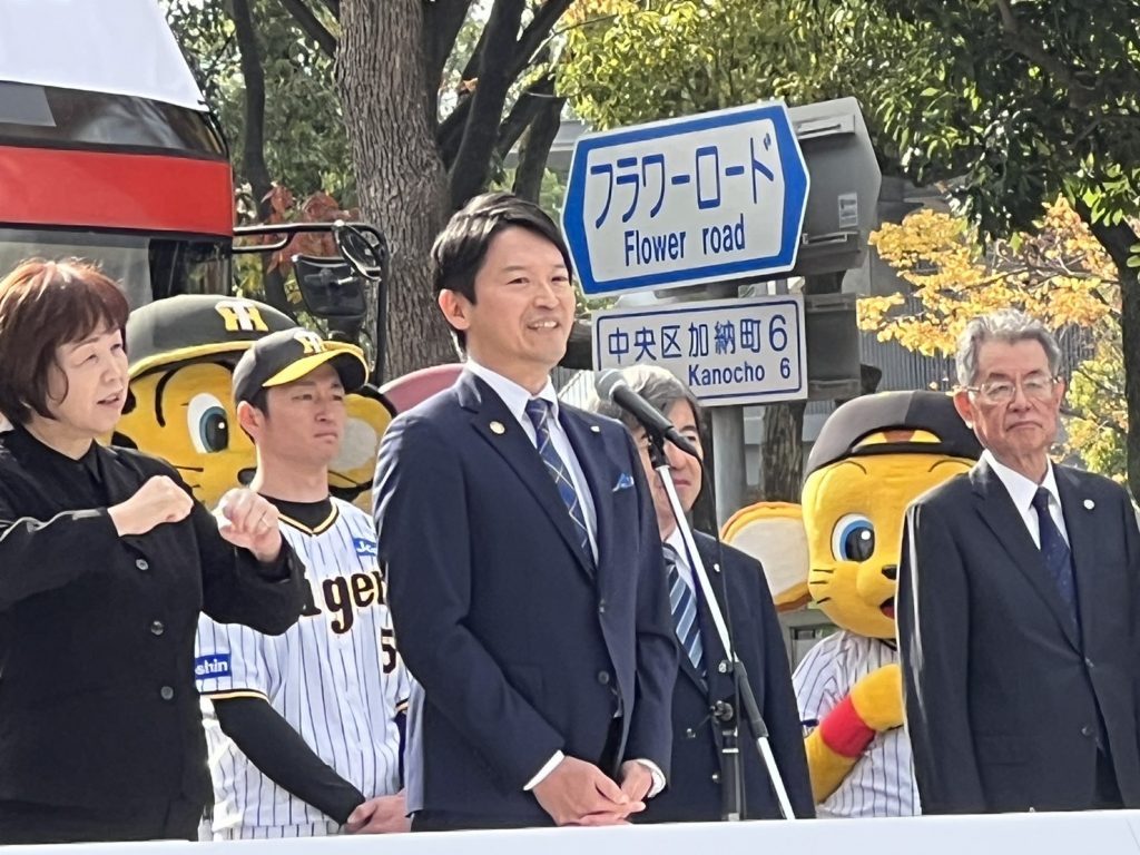 阪神タイガース優勝パレード、斎藤・兵庫県知事「慎重に考える」吉村・大阪府知事は実施に前向き 2025/09/09 (写真3枚) 2年ぶりにセ・リーグ優勝を果たしたプロ野球・阪神タイガースの記念パレードについて、斎藤元彦・兵庫県知事は8日、「警備費や物価高騰を踏まえ、兵庫での開催は慎重に考えたい」と述べた。報道陣からの取材に答えた。 記事全文を読む 関連記事 選手が見えたのは数ミリ、数秒…「なんなら見えなくてもうれしい!」 阪神・オリックスの優勝パレード 2023/11/29 プロ野球 阪神・オリックス優勝パレード、100万人が大声援 神戸・大阪同時開催 2023/11/24 プロ野球優勝パレード “補助金キックバック疑惑” 斎藤・兵庫県知事ら背任容疑で書類送検 兵庫県警 2025/06/13 プロ野球優勝パレード・”補助金キックバック”疑惑 片山・元兵庫県副知事、百条委で改めて否定 2024/10/29 斎藤元彦・元兵庫県知事ら、背任容疑で兵庫県警に刑事告発 プロ野球優勝パレード“キックバック”疑惑 2024/10/10