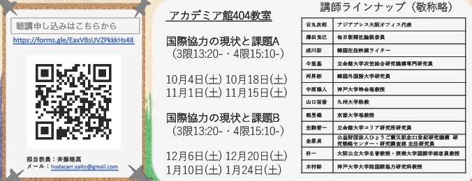 会場は神戸大学・六甲台第一キャンパス(アカデミア館 404 教室)で2025年10 月〜2026年1月の隔週土曜・午後に開講し、オンライン配信も予定している。