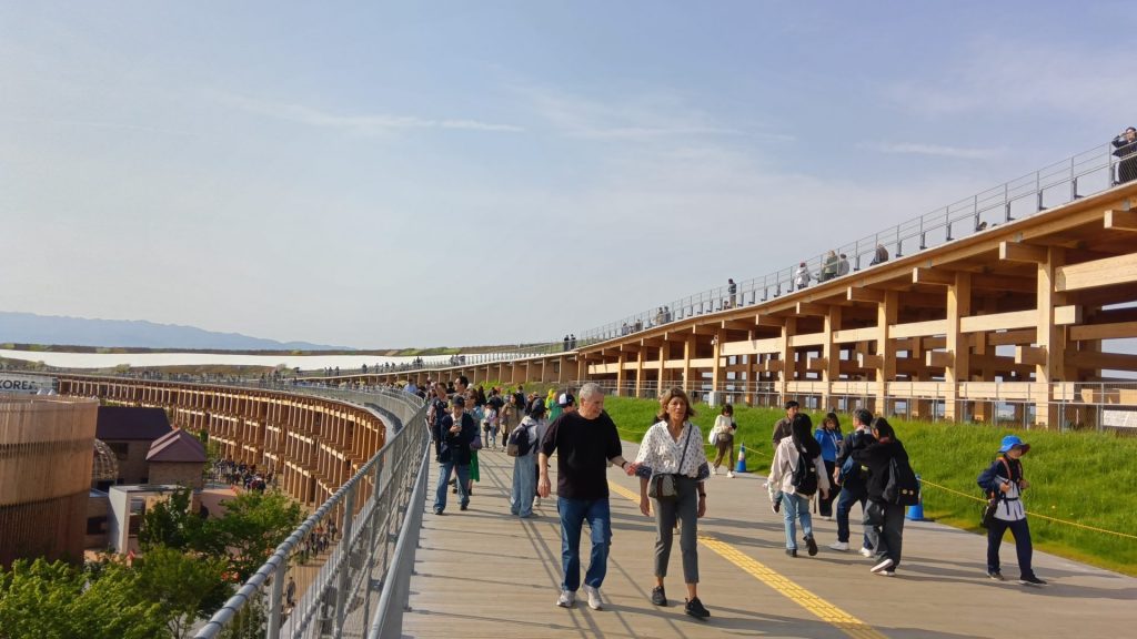 大屋根リングは、世界最大の木造建築物として2025年3月にギネス世界記録に認定された。