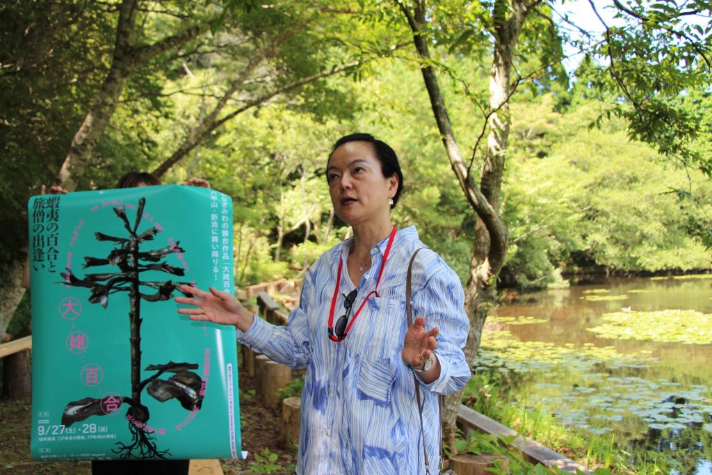 元教会・ホテルにも多彩な作品 やなぎみわの野外舞台も 神戸六甲ミーツ・アート 見どころ紹介【3】 2025/09/20 野外パフォーマンス作品「大姥百合(オオウバユリ)」について話すやなぎみわ。同作はやなぎの右側に広がる新池で上演される Prev 1/11 Next 記事を読む 関連記事 【画像】六甲山上に花咲く多彩なアート作品【3】 2025/09/20 自然との調和、永遠なる道、鼻の穴に広がる宇宙まで 神戸六甲ミーツ・アート 見どころ紹介【2】 2025/09/17 巨大であどけない少女の笑顔、山にのぼったしらす 今年の神戸六甲ミーツ・アート 見どころ紹介【1】 2025/09/14 もう1つの国際フェスも熱い! 大阪各地を舞台にアートの祭典 24か国・地域の約100作家が参加 2025/09/08 地下鉄駅が“小さな美術館”に 神戸市、海岸線全駅に若手アーティスト作品を展示 販売で作者支援も 2025/08/27
