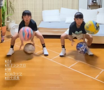 この日はチームの練習のあと、自宅で自主練習をしていたふたり。練習記録として、お母さんが動画を撮影していました。ボールを2つ使い、体勢を低くとり、前を向いたまま両手でドリブルをし続けるハンドリング練習をしているゆなちゃんとななちゃんが映し出されます。