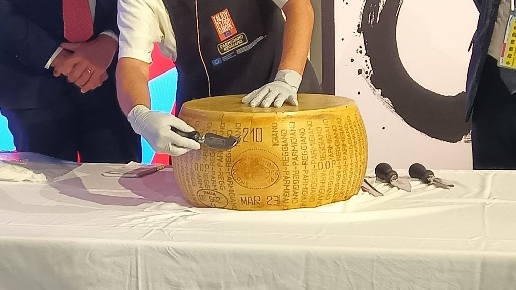 同州のミケーレ・デ・パスカーレ知事は「文化と歴史、ものづくり、食文化を大切に守り伝えている日本と同じ。主たる産業は自動車。フェラーリをはじめ、“スピード”で世界を席巻するメーカーは私たちの誇り。そして、伝統的に製造されているイタリアチーズの王様、パルミジャーノ・レッジャーノをぜひ味わってほしい」と話した。