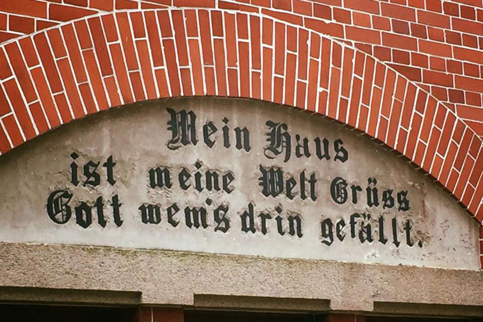 館の裏には、“家に幸運を呼び込むためのおまじない”のようなものと考えられている家屋銘文も。日本語訳すると「私の家は私の世界。気にいった方はどうぞお入りください」という意味の言葉が、ドイツ語で書かれています。ここには、「家と仕事の繁栄に関する願い」が込められていたのではと推測されているのだとか。