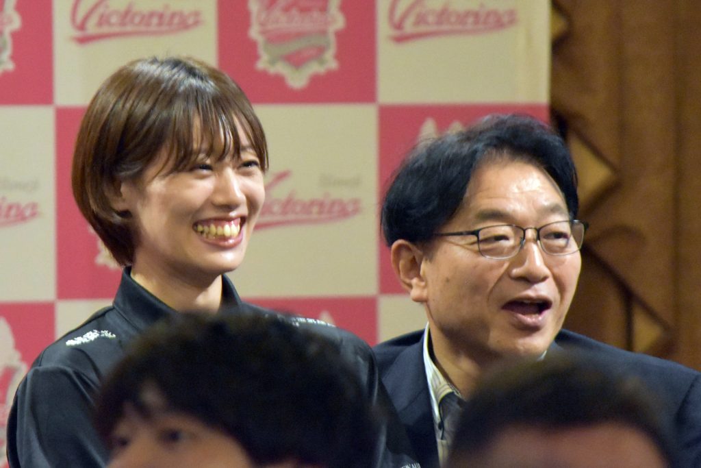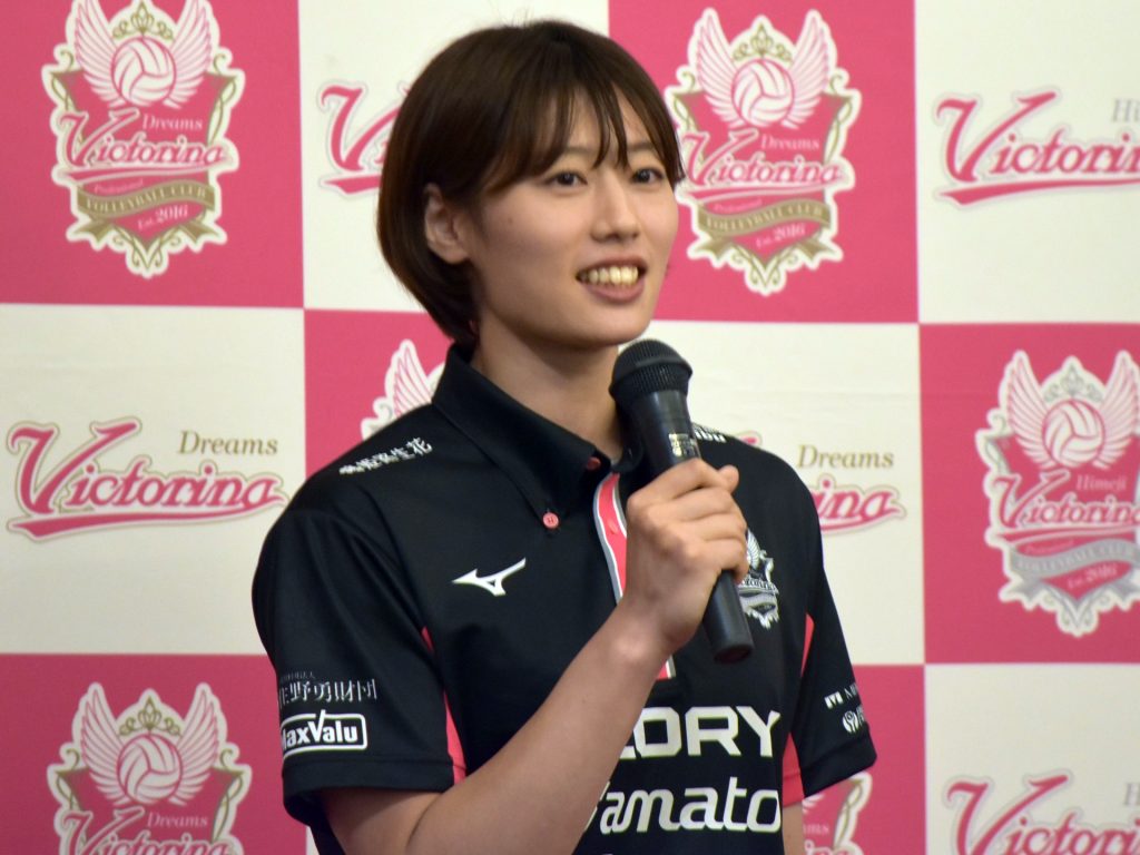「姫路は、バレーボールの普及率の高さもあると思うが、バレーボール、ヴィクトリーナ姫路というのが、皆さんに浸透している。街中で『応援してます!』と声をかけていただくことがすごく多いし、とても温かい地域。その応援にぜひ応えたい。ホームゲームにも多くの方に来ていただいているので、そこで私たちのいいプレーを見てもらって、もっと地域を盛り上げていけるよう頑張っていきたい」と、姫路の代表としての活躍も誓っていました。