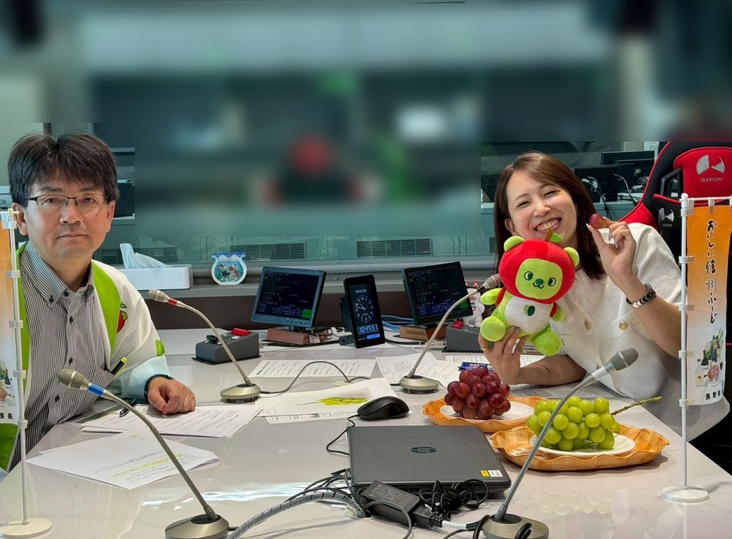 長野県大阪事務所の赤岡所長(左)と、ラジオ関西『歌声は風にのって~ブランチ~』パーソナリティーのいがらしあみ