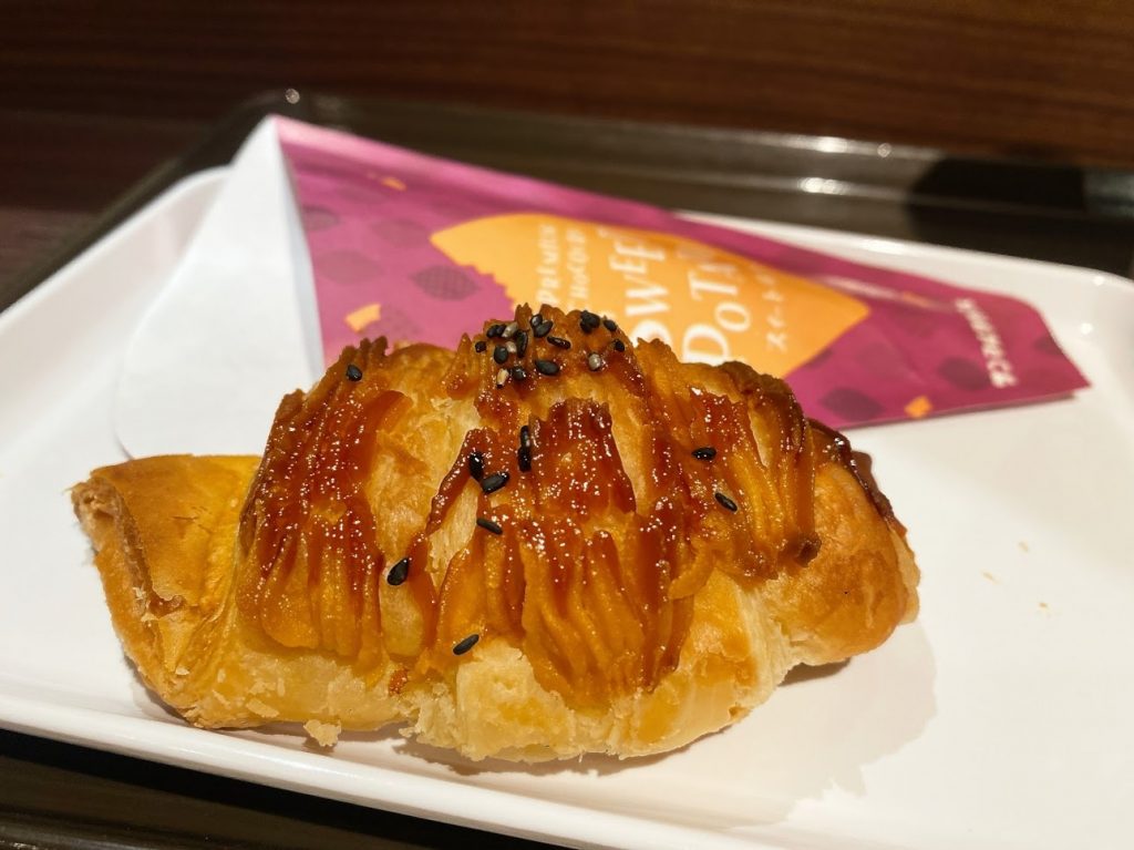 外側のサクサク感と、中のしっとりした安納芋クリームの食感の違いが印象的。カロリーは通常のチョコクロ(246キロカロリー)よりやや高いものの、このリッチな味わいなら納得でした。