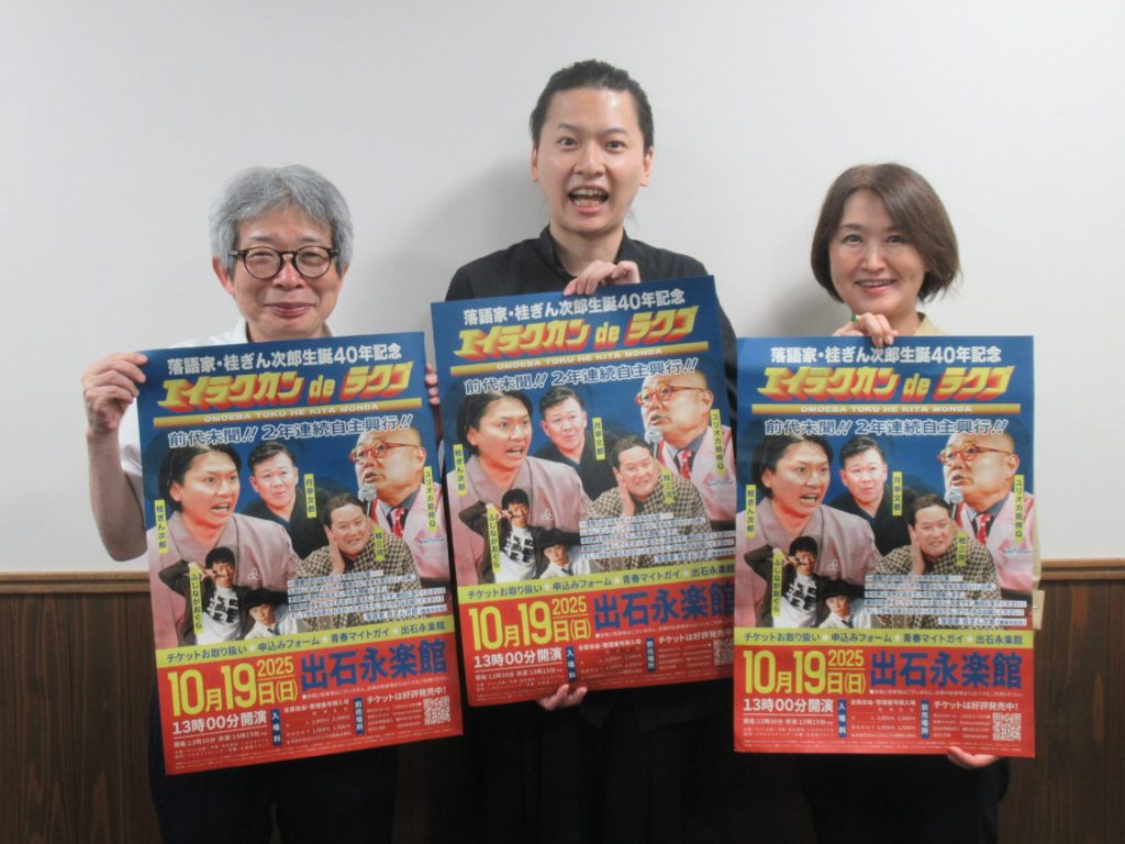 ビニールハウスで落語会も経験の桂ぎん次郎 今月19日には出石永楽館で『生誕40年記念落語会』 2025/10/16 (写真4枚) 平田オリザさん(劇作家・演出家)のラジオ番組(ラジオ関西『平田オリザの舞台は但馬』)に、落語家の桂ぎん次郎さんが出演。大阪と兵庫・豊岡市の2拠点で活動するようになった経緯と醍醐味について語った。 記事全文を読む 関連記事 映画「国宝」のロケ地がある豊岡市 コウノトリを通じた交流も活発に 市長就任から4か月半 門間市長 2025/10/09 「豊岡は第2の故郷」 地域おこし協力隊DJが音楽イベント『豊岡プチロックフェス』開催 6月8日 2025/05/29 審査員はあなた! 『第2回落語甲子園』 近畿最古の芝居小屋「出石永楽館」で開催 2023/08/10 近畿最古の芝居小屋「出石永楽館」でロックフェス『辰巻』開催 プロ〜小学生まで参加 2025/03/06 片岡愛之助が座頭務める『永楽館歌舞伎』 4年ぶり開催で「待ってました!」の声高らかに 兵庫・出石 2023/10/05