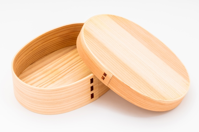 【柾目】デザイン性と耐久性を両立させたい箇所に適している。直線的で美しい見た目から、建具や床材・柱などに使われる。また、調湿効果もあるため水分の出入りを調節したい容器(曲げわっぱ・化粧箱など)にも活用される。