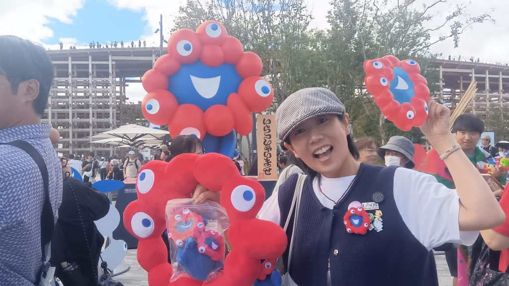 「ミャクミャクに癒やされて…最初は不気味なキャラクターだったけど、今やこんなに愛されて。きょうはグッズを買い占めた。“万博ロス”になってしまいそうだが、これからもっといろんなスポットに出掛けたい。何よりも前向きにしてくれた万博とミャクミャク、ありがとう」とポーズ。