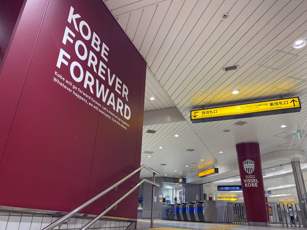 ノエビアスタジアム神戸の最寄り駅、ヴィッセル神戸仕様に! “勝利の女神”五百城茉央も歓喜