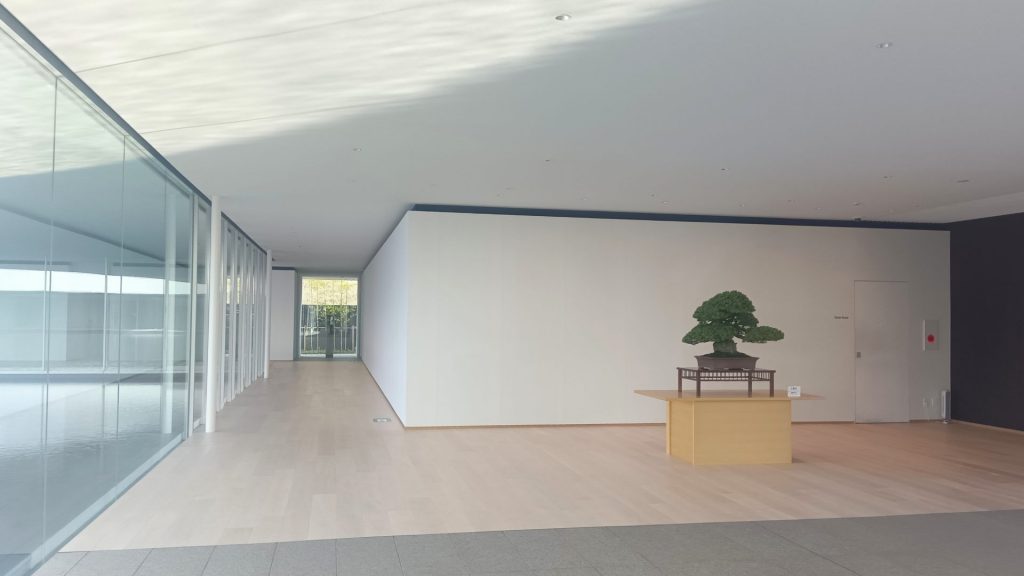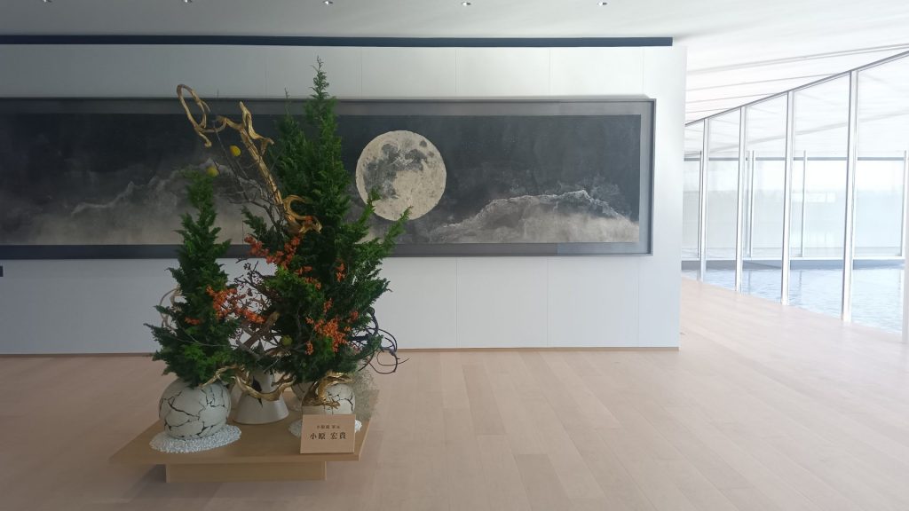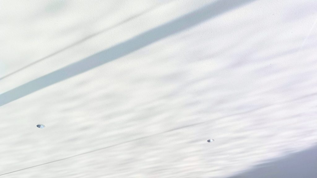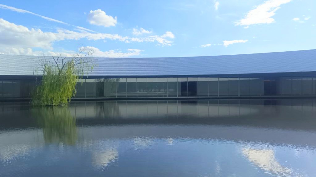 迎賓館の天井に水盤の水面(みなも)の揺れによって光をリフレクション(反射)する