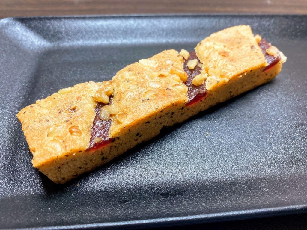 小さく砕いたクルミのカリッとした食感もいいアクセント。さっぱりとした後味です。カロリーは、今回発売の4種のなかで最も低い数値でした。