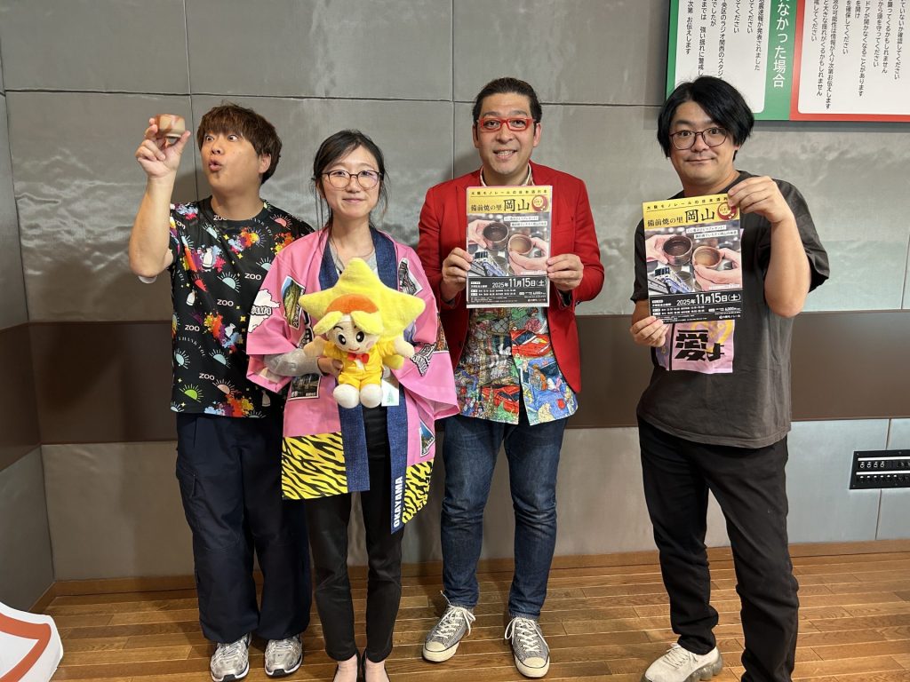 池上さんによると、現在「万博記念公園駅」にて岡山県に関連したイベントが開催されているとのこと。方言に関する催しや、備前焼を使用した飲み比べ企画も実施されており地酒を味わうこともできるのだとか。