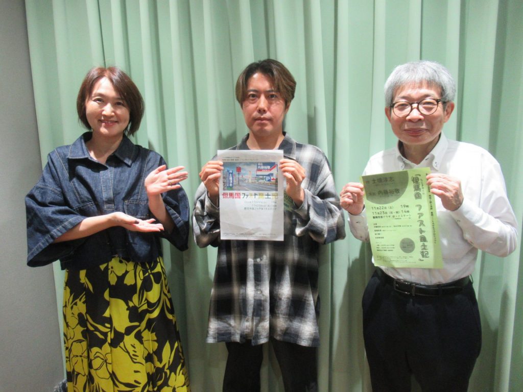 劇作家・平田オリザに影響受けた作家 新作『但馬国ファスト風土記』が紡ぐ地域の物語 2025/11/06 (写真2枚) 平田オリザさん(劇作家・演出家)のラジオ番組(ラジオ関西『平田オリザの舞台は但馬』)に、劇作家・演出家の土橋淳志さんが出演。これまでの経歴や、今月、豊岡市民プラザ(兵庫県)で上演される予定の書き下ろし作品について語った。 記事全文を読む 関連記事 劇作家・菱田信也 多数の受賞作品やテレビドラマ手がけるも、震災・自己破産・コロナ…波乱万丈の人生 2025/01/16 若手気鋭演出家 インタビューもとに“新時代の表現” 太田省吾の戯曲『更地』の準備上演 20日から 2024/12/12 俳優・原田大二郎が若者にエール「とにかく熱中することを見つけて」 西田敏行さんとの思い出も回顧 2024/11/22 劇作家・演出家の平田オリザ 中堅演出家にアドバイス 「年上の俳優は金のわらじを履いてでも探せ」 2024/05/30 金融機関・但馬信用金庫の演劇部が描く「地域貢献の新たな形」 営業終了後の店舗での上演で話題に 2025/10/30