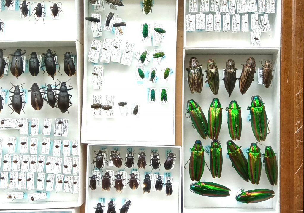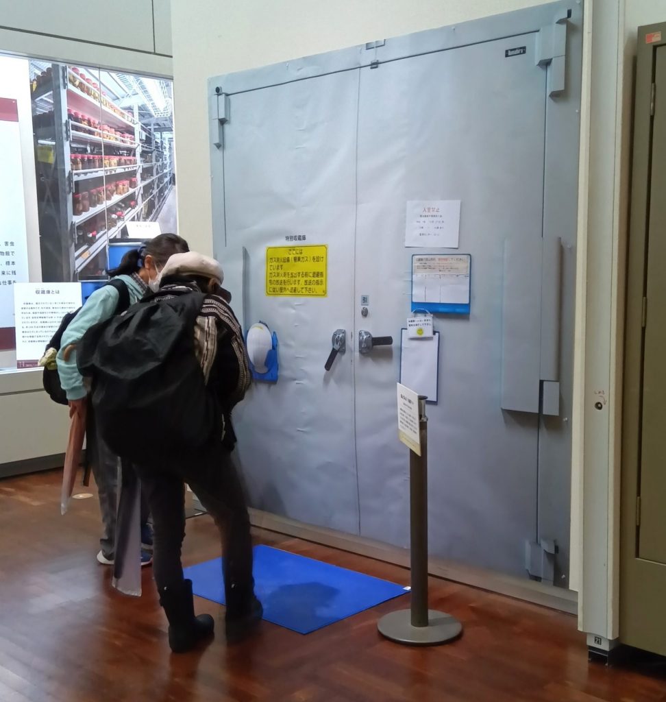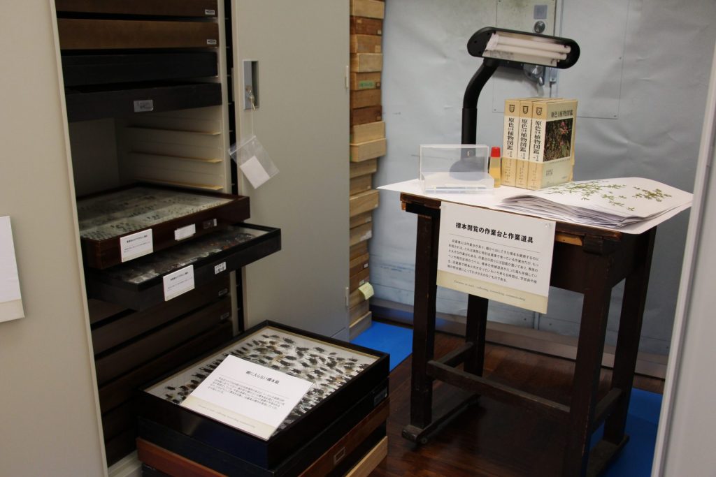 見どころは、ふだん博物館関係者しか立ち入ることができない収蔵庫を再現したコーナー。引き出しや標本が所狭しと並ぶ中、小ぶりな作業台が置かれた庫内の様子を見ることができ、収蔵庫前にある靴の裏をきれいにする粘着マットを実際に踏む体験もできる。スペース・人員不足など標本管理の問題点のほか、標本を食べてしまう虫についての特集もあり、日頃の学芸員たちの苦労と努力が垣間見える。