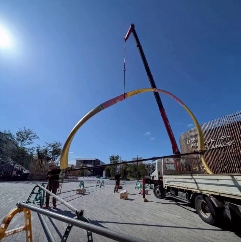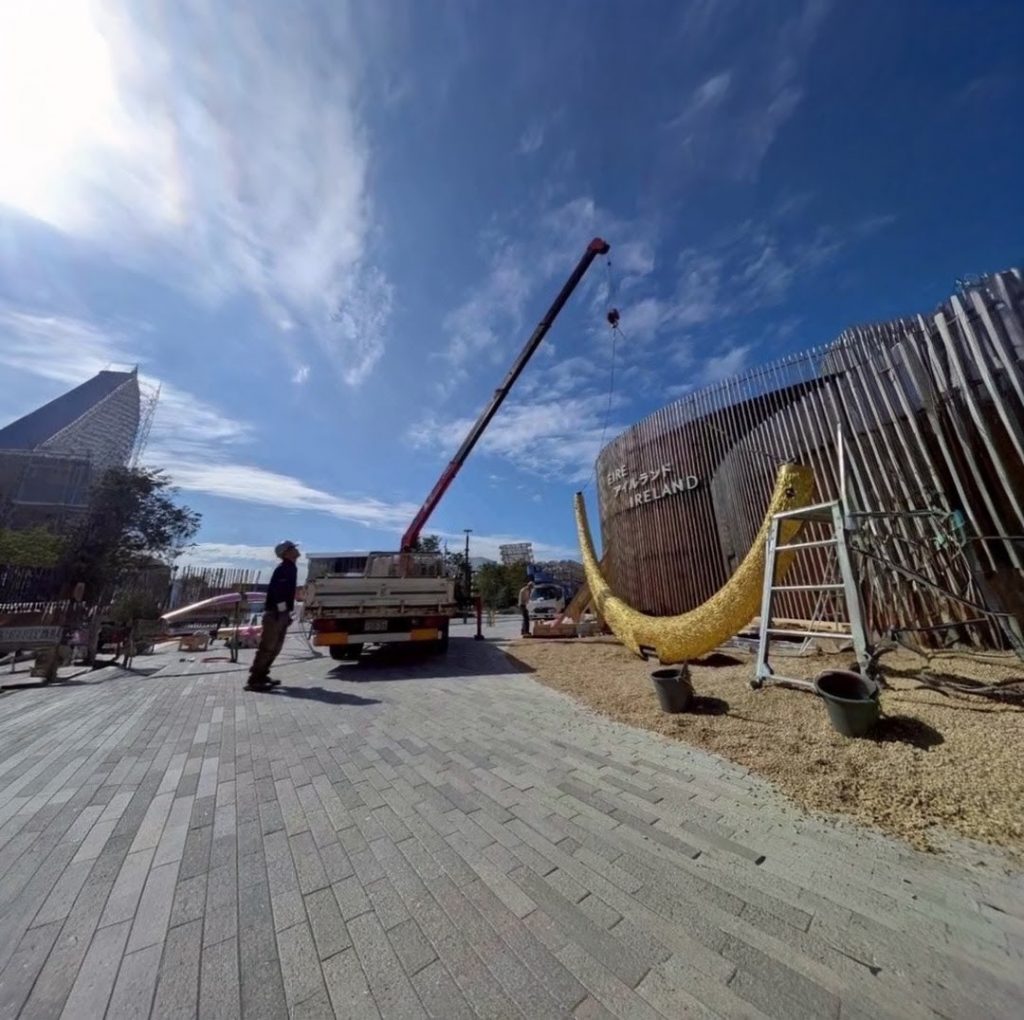 大阪・関西万博(10月13日閉幕)のアイルランドパビリオン前に設置されていた巨大な円形モニュメント「Magnus Ring(マグナス・リン)」が11月14日午後、会場の夢洲(大阪市此花区)から京都・知恩院(京都市東山区 浄土宗総本山)境内へ移設された。