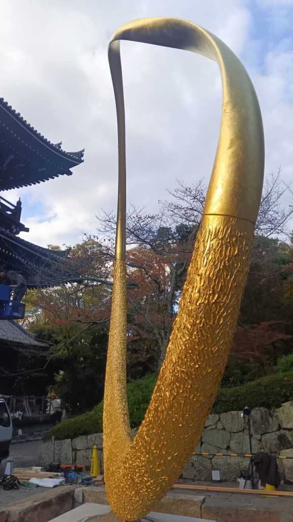 知恩院の九鬼昌司総務部課長は「ここまで風景に溶け込むとは思わなかった。知恩院の三門は、聖域と俗域とを分かつ“結界”という意味合いがある。この三門をくぐり、男坂を前にした時、Magnus Ringが訴えかけるメッセージを感じていただきたい。それはレガシーを感じることでもある」と話す。