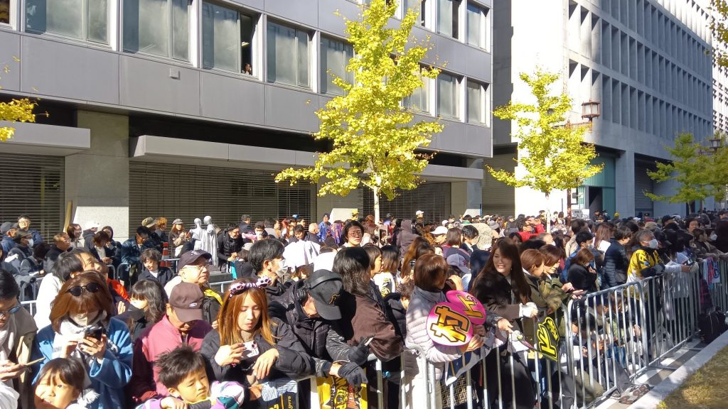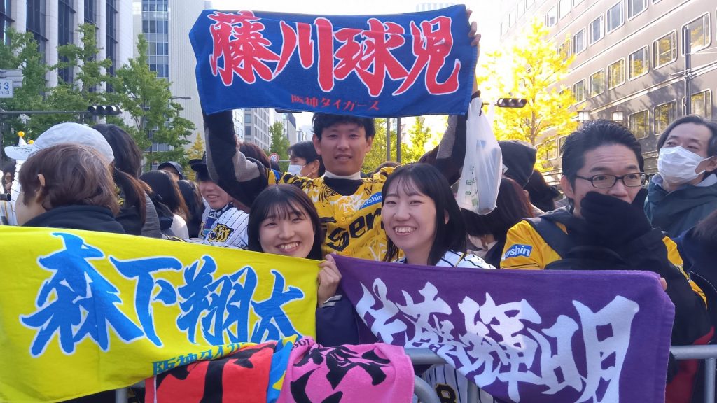 広島市から来た20代の女性は、「関西に住む姉と一緒に朝7時から沿道に並びました」と興奮した様子。「姉も私も生まれた時から阪神ファン。広島出身ですが、今や堂々と阪神ファンを公言しています」と微笑んだ。
