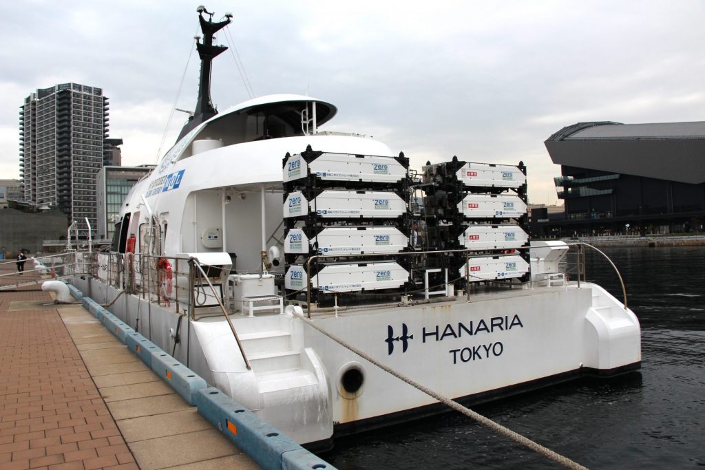水素燃料電池とリチウムイオンバッテリー、バイオディーゼルによる世界初のハイブリッド型電気推進システムを搭載した水素燃料旅客船「HANARIA(ハナリア)」が神戸港(神戸市)にこのほど入港、27日、記念のセレモニーが停泊中の船内で開かれた。同システムの水素燃料旅客船が神戸港に来たのは初めて。