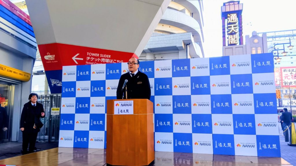 『#まいど通天閣』日本初の“#副駅名” 南海・新今宮駅に エルフ・荒川さん「伝説の日、アゲ〜!」 2025/12/05 インバウンドとの共存、大阪ミナミの一体化「グレーターなんば構想」には通天閣のブランド力は欠かせない Prev 1/18 Next 記事を読む 関連記事 「“なんかいい”通天閣」南海電鉄と資本提携・子会社に「ポスト大阪・関西万博、シナジー効果アップ」 2024/12/05 「お久しぶりです!」リニューアル通天閣、全面LEDで多言語対応 ”新世界へのメッセージ!” 2023/09/23 「絶叫!10秒間のワクワク・ドキドキ」通天閣、全長60m滑り台「タワースライダー」登場!観光復活の起爆剤に 2022/05/09 通天閣『干支の引継ぎ式』大阪・関西万博、注目“ヘビー”級!“長蛇”の列で千客万来…巳年へ 2024/12/28 神戸ポートタワー、来場100万人達成 客足大幅増、リニューアル後1年7か月で 記念セレモニー開催 2025/12/04