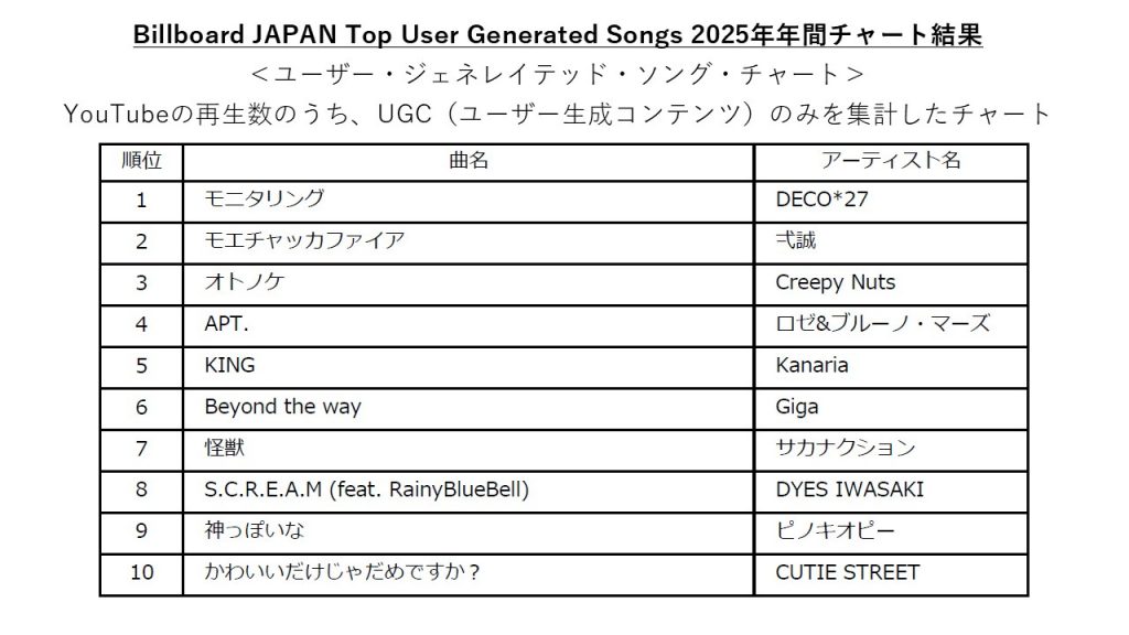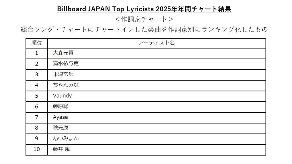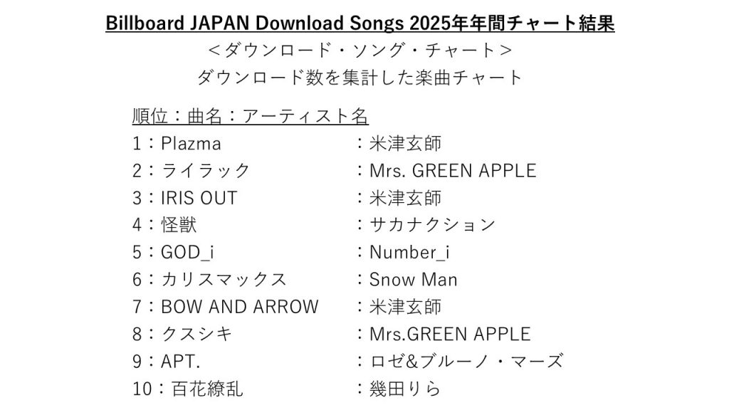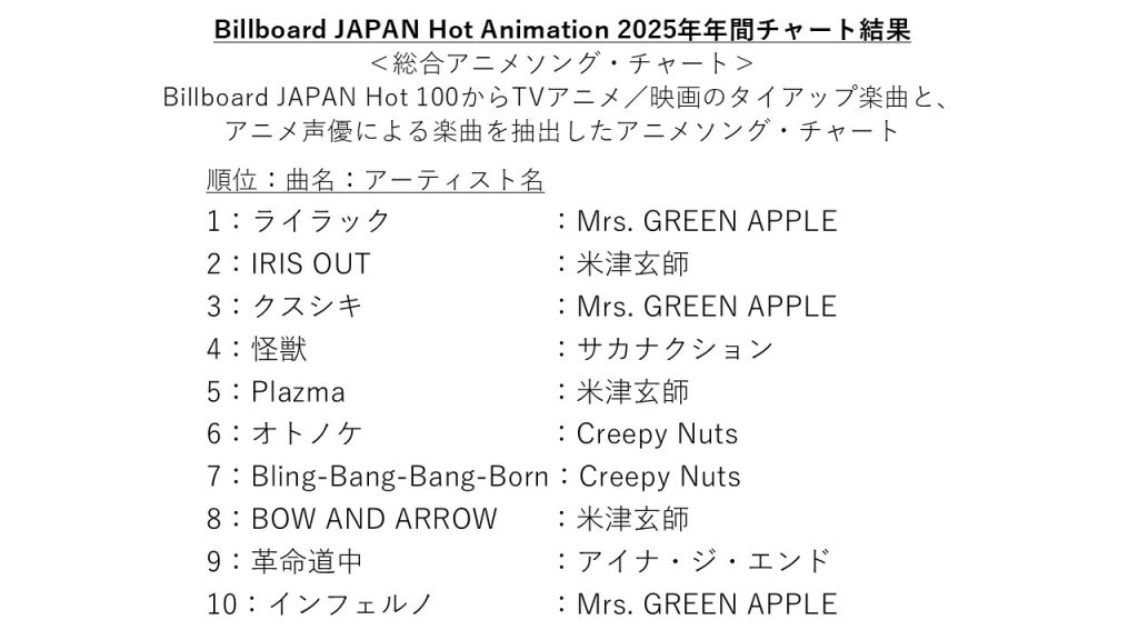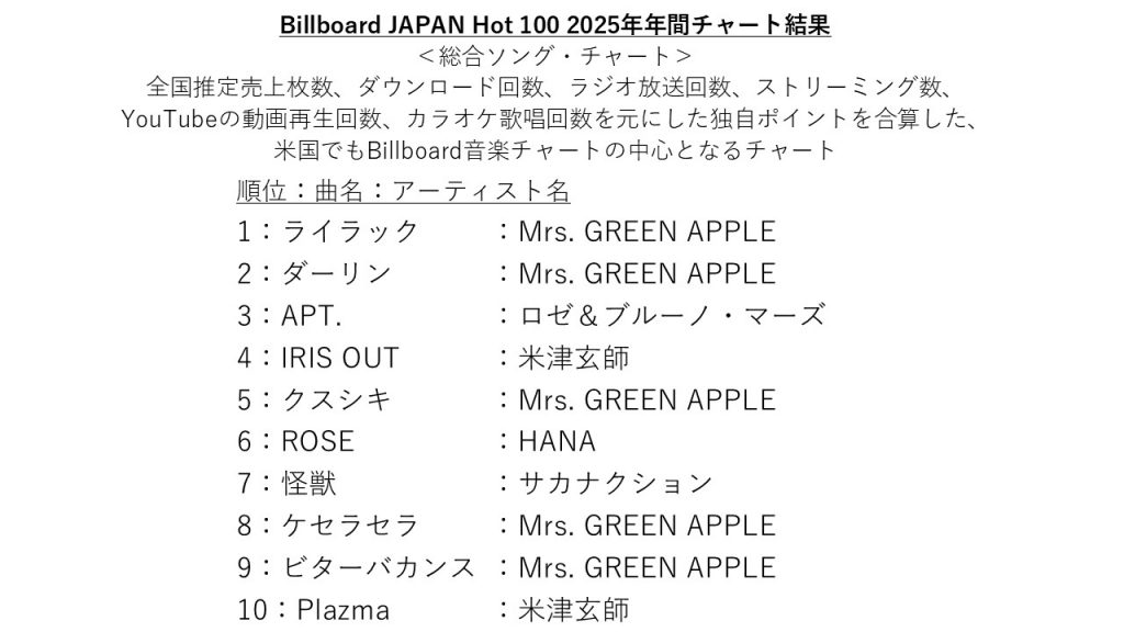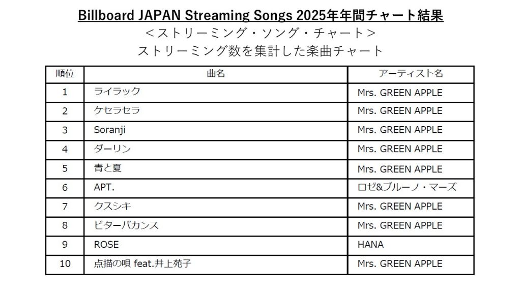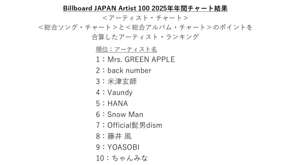 Mrs. GREEN APPLE (2025年年間 総合ソング&アーティスト・チャート1位)※画像提供:ビルボード・ジャパン / 阪神コンテンツリンク