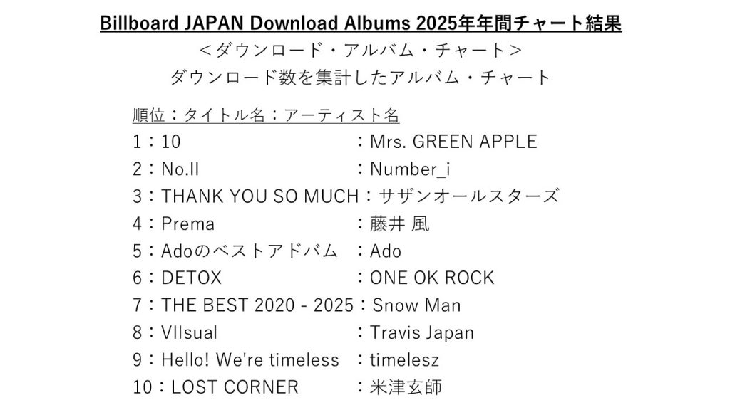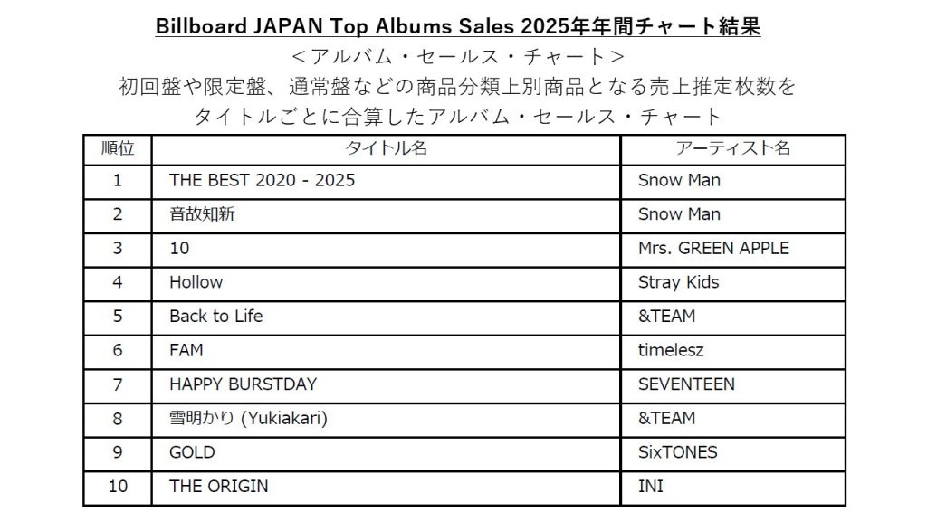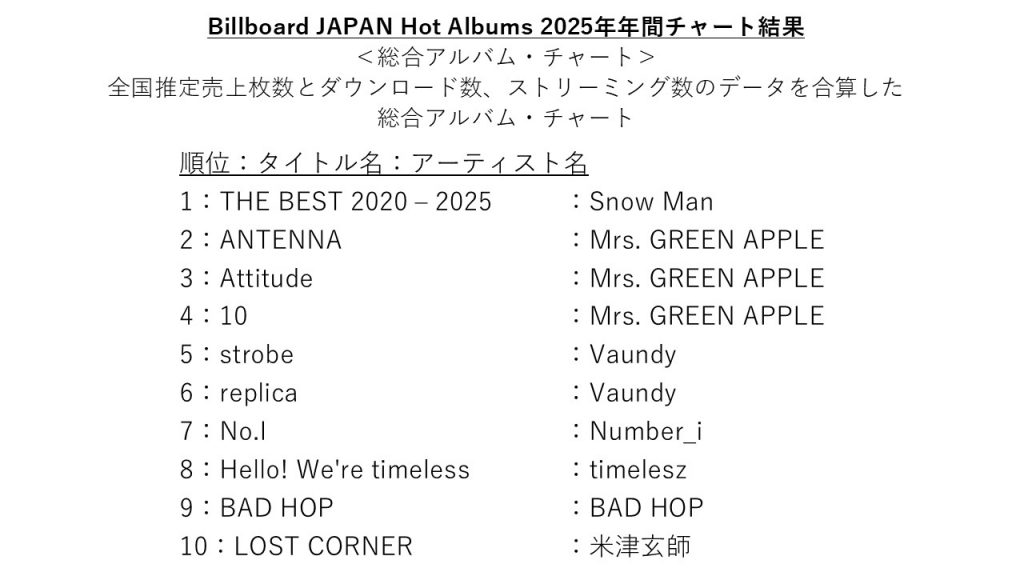 ビルボード年間チャート ミセス躍動の1年 Snow Manはアルバム部門で史上初の記録達成