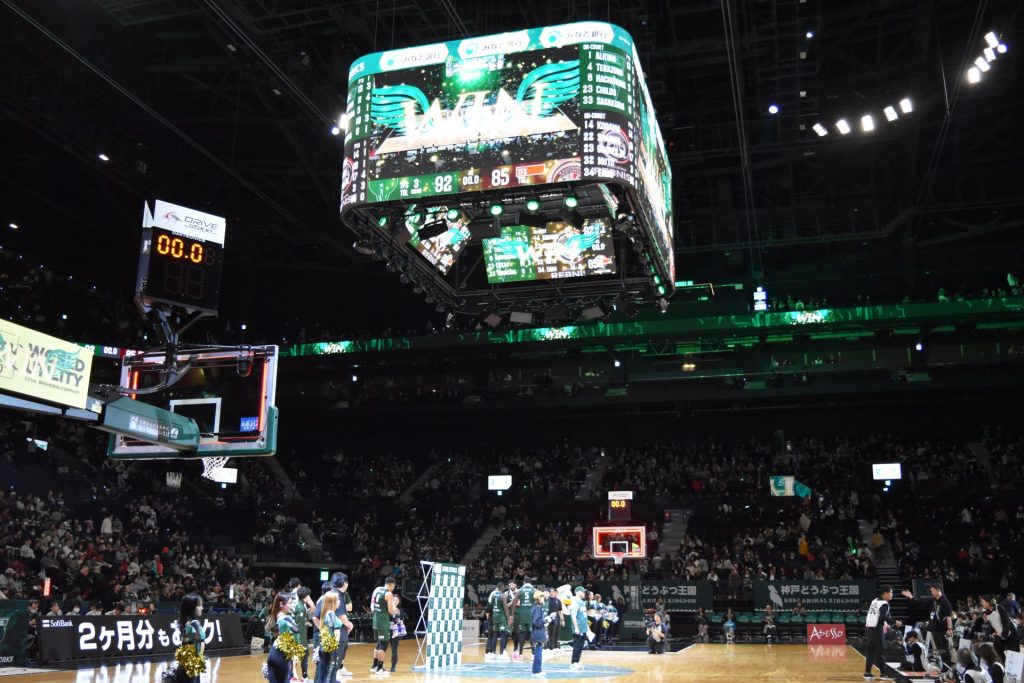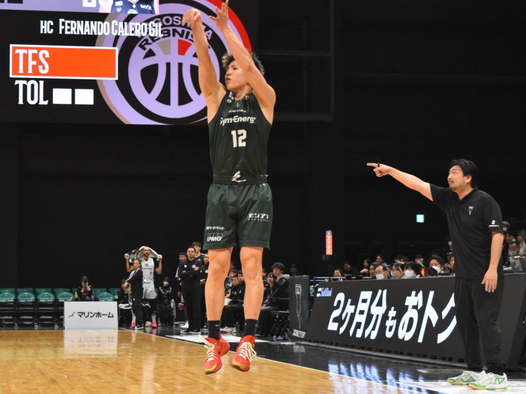 前半から第3クオーター途中までは、木村圭吾選手が24得点を記録し、チームを牽引する。その木村選手が途中、負傷により交代を余儀なくされるも、拮抗した展開の中、勝負どころの第4クオーターで笹倉怜寿選手が2連続でスリーポイントを決めるなど、出場選手が次々と活躍。最後はチームの主力であるヨーリ・チャイルズ選手のダンクシュートでとどめを刺し、92-85と勝利して、前回のリベンジを果たした。