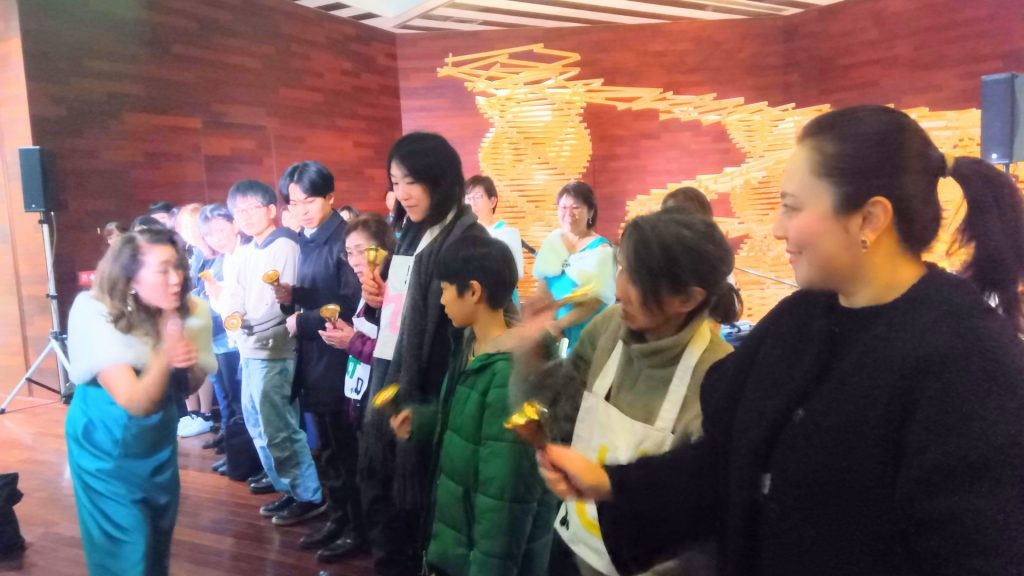 コンサート後は、ミュージックベル体験セッションがあり、飛び入り参加で「きらきらぼし」を合奏、子どもから大人まで楽しいひとときを過ごした。参加者は「知らない人どうしがアイコンタクトをしながら演奏して、親近感を持てた」「まるでティンカーベルの一員になった気分」と満足した様子だった。