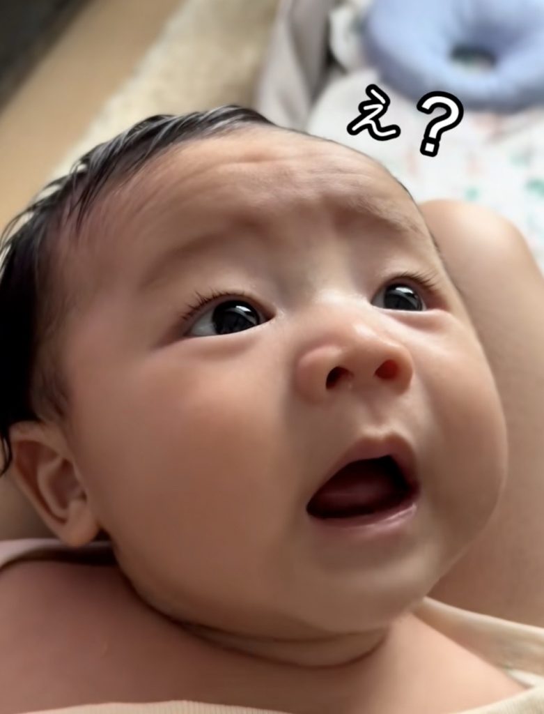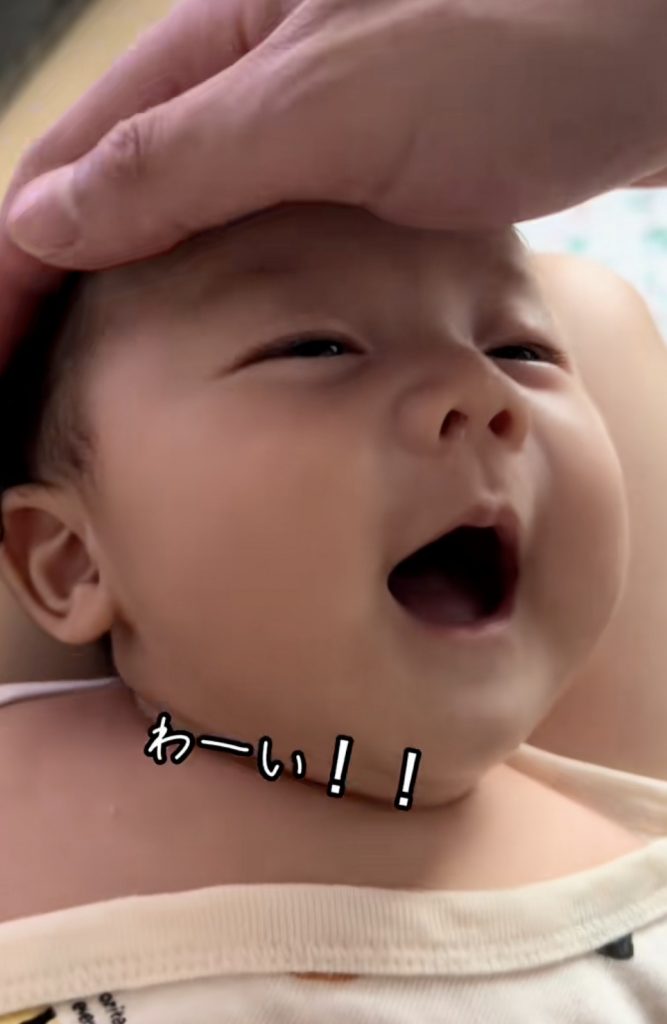 パパのなでなでが終わった時の赤ちゃんの反応が可愛すぎた(提供:@aka.ultraman1さん)