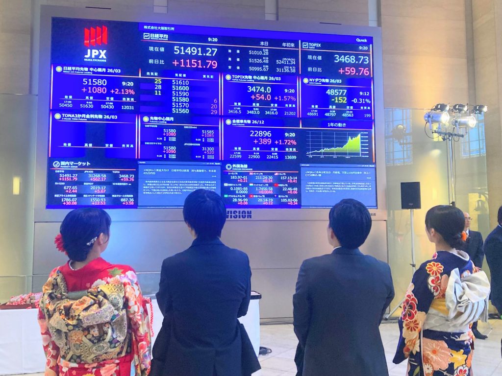 振袖、羽織袴姿で参加した大手証券会社の若手社員らは、「『尻下がり』にならないことを期待したい。アメリカ・トランプ政権のベネズエラ攻撃による影響が気がかりだが、日本経済の力強さで、株価6万円台も夢ではない『尻上がり』の1年に」と前向きに話した。