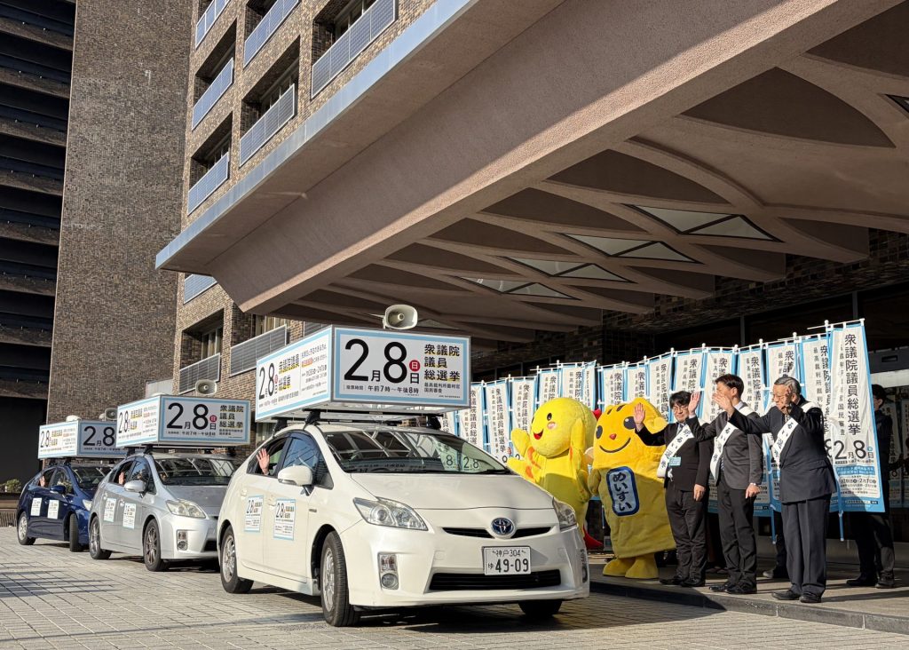 【第51回衆議院議員総選挙】2月8日投票 神戸・三宮&ジーライオンアリーナ神戸で投票啓発 PR 2026/02/04 兵庫県が催した自動車啓発出発式の様子 Prev 1/2 Next 記事を読む 関連記事 「1票の大切さを認識して投票へ」 明るい選挙呼びかけシンボル旗を掲揚 兵庫県庁 2026/01/26 投票日、朝1番乗りが行う特別な“任務”とは? 神戸市内で選挙啓発イベント 模擬投票に254人参加 2026/02/02 どデカい!広大な選挙区巡ってみた←全然違う環境や文化…「立候補者も大変やなあ」衆議院選挙2026 2026/01/31 「あなたの、強き一票を。」 阿部一二三選手・詩選手が呼びかけ (2025年) 2025/10/14 若者の投票率向上へ 兵庫・神戸で選挙の啓発イベント(2025年) 2025/07/15
