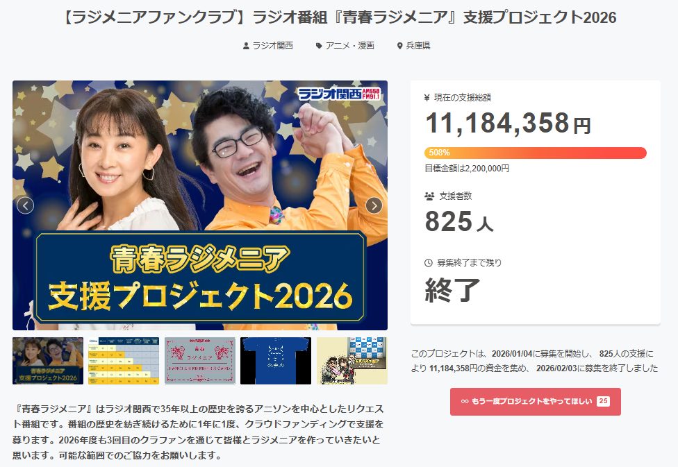 『青春ラジメニア』クラファン3年連続で1000万円突破 故人への思い、親孝行…支援に込められた声