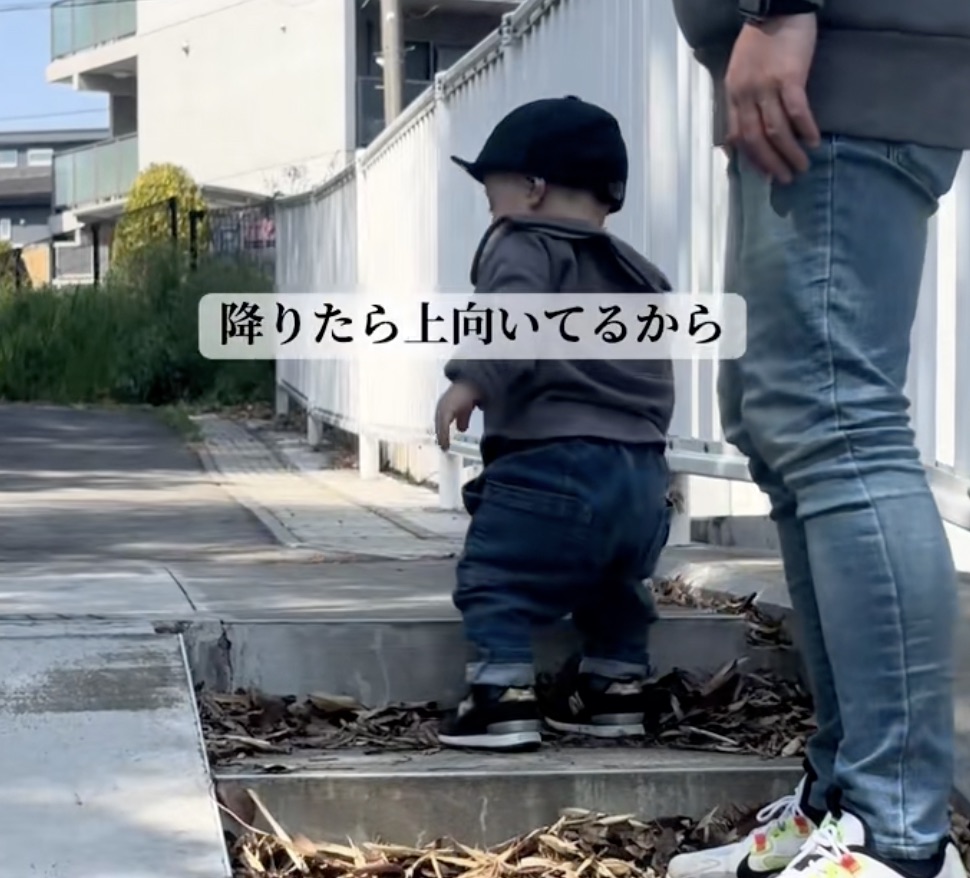 階段を降りたはずが、一向に降りられない1歳男の子 動画は510万再生「前しか向いてなくて尊敬」