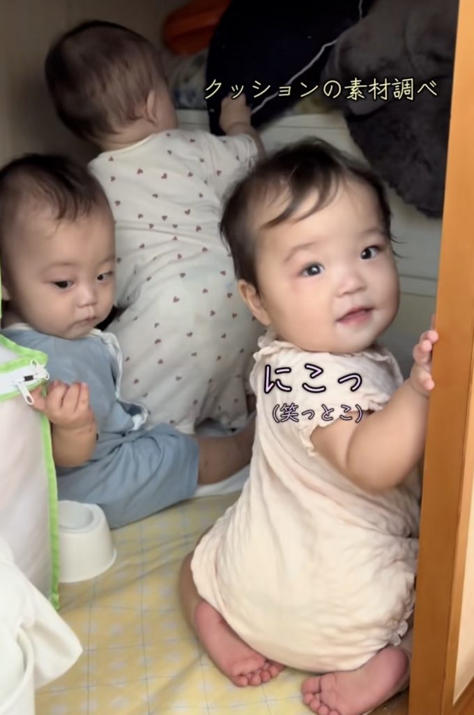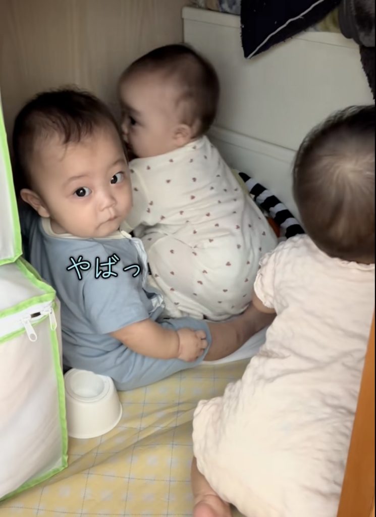 押入れを探検! わちゃわちゃ楽しそうな三つ子の赤ちゃんに癒される人続々 「秘密基地かな?」