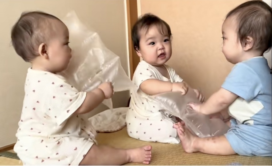 三つ子ちゃんの可愛らしいイタズラがSNSで話題に(提供:@ry_0926_momさん)