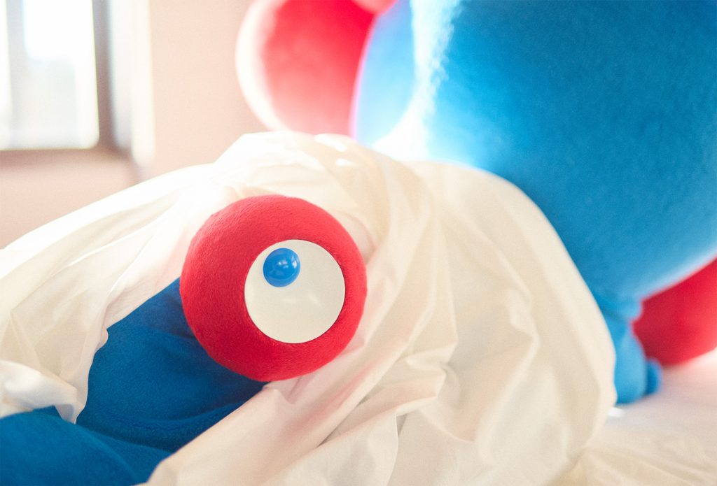 「あっ、ミャクミャク!」寝そべりミャクミャク 子どもたち大喜び…大阪・南港ATCへ3度目の移設