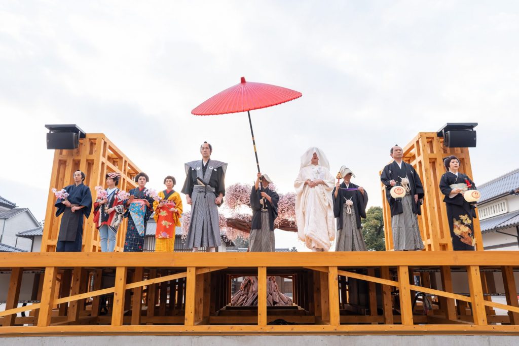 白無垢の花嫁は祝賀に沸く中、ステージのある大手門広場まで練り歩く。花婿が待つステージに花嫁が到着すると事件が起きる、というストーリー。 東映の誇る役者陣が、 殺陣(たて)の魅力を存分に披露する。