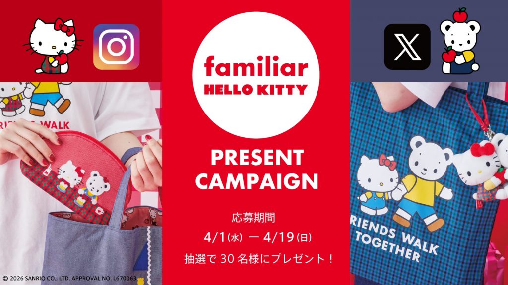 「ファミリア×ハローキティ」初コラボ!ファミちゃんの記念アイテム発売 神戸・東京でイベントも 2026/04/07 衣料 Prev 5/18 Next 記事を読む 関連記事 【画像】Tシャツはファミちゃんとハローキティがなかよく過ごす様子がデザイン 2026/04/07 【画像】ファミリア神戸本店レストランでハローキティとのコラボプレートが登場 2026/04/07 「スシロー×文豪ストレイドッグス」初コラボ!春の私服姿を描いた限定グッズ付きメニュー登場 2026/03/29 「ポケピース」コラボのフェイスデザインリップバーム登場 ピカチュウやミミッキュなど全4種発売 2026/03/28 限定コラボ!「RINGO×ハローキティ」 リボンが付いたアップルパイと限定グッズのセット発売 2026/03/26