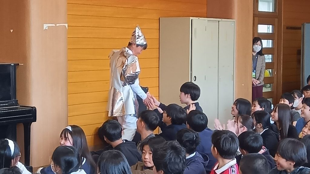 ユニフォーム寄贈第1号は、大阪府豊中市・市立南丘小学校。卒業式を目前にした3月11日、6年生約110人が“贈呈セレモニー”に出席。