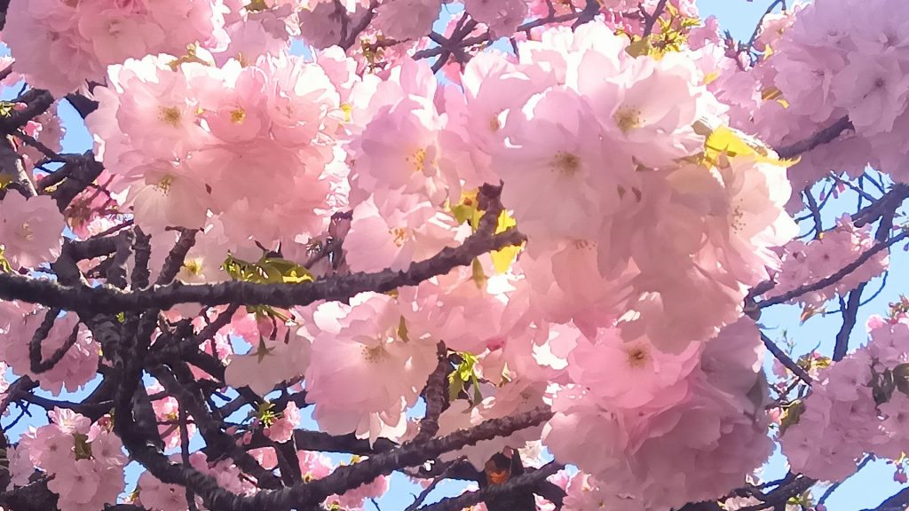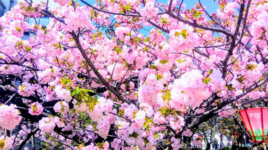 今年の桜は140品種331本。造幣局の桜は全長約560メートルの通路に、関山(かんざん)、松月(しょうげつ)、普賢象(ふげんぞう)、楊貴妃(ようきひ)などの八重桜が咲き誇る。