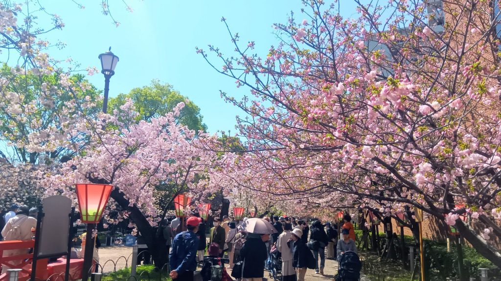 大阪市平野区の94歳の男性は、家族とともに初めて訪れた。「初めて桜を楽しむことができ、英気を養うことができた」と満足げに話した。