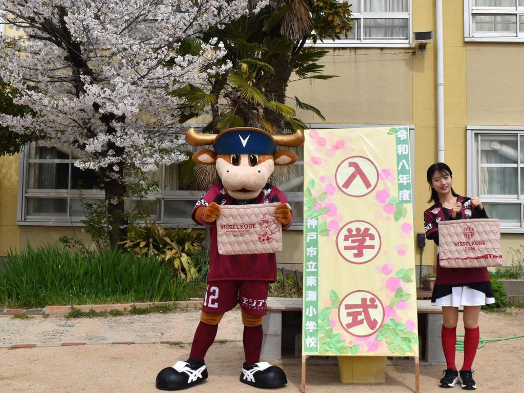 「モーヴィ!」歓声の入学式、防災も学ぶ ヴィッセル神戸 市内の新小学1年生にバッグを贈呈 2026/04/09 (写真5枚) 神戸市の小学校で9日、入学式が行われた。東灘区の市立東灘小学校では、サッカーJ1・ヴィッセル神戸のマスコットキャラクター「モーヴィ」が登場し、新1年生にレッスンバッグを贈呈。神戸市消防局による防災講話も行われ、子どもたちは新生活のスタートとともに身を守る大切さも学んだ。 記事全文を読む 関連記事 祝・新入学! ヴィッセル神戸、神戸市内の小学1年生にレッスンバッグをプレゼント 「モーヴィ」もサプライズで祝福 2023/04/11 イニエスタ、退団前にJ1神戸ホームタウン活動 市内の小学校を訪問 子どもたちにエール「これからも学び続けて」 2023/06/22 ヴィッセル神戸FW大迫勇也が小学生にエール「質より量。どんどん練習を」 2025/10/30 ヴィッセル神戸FW武藤嘉紀、子どもたちにアドバイス「大きな夢を持って、あきらめずに頑張って」 2025/10/10 神戸のプロ2クラブ、ヴィッセルとストークスがコラボ 子どもたちがサッカーとバスケを同時体験 2026/03/09