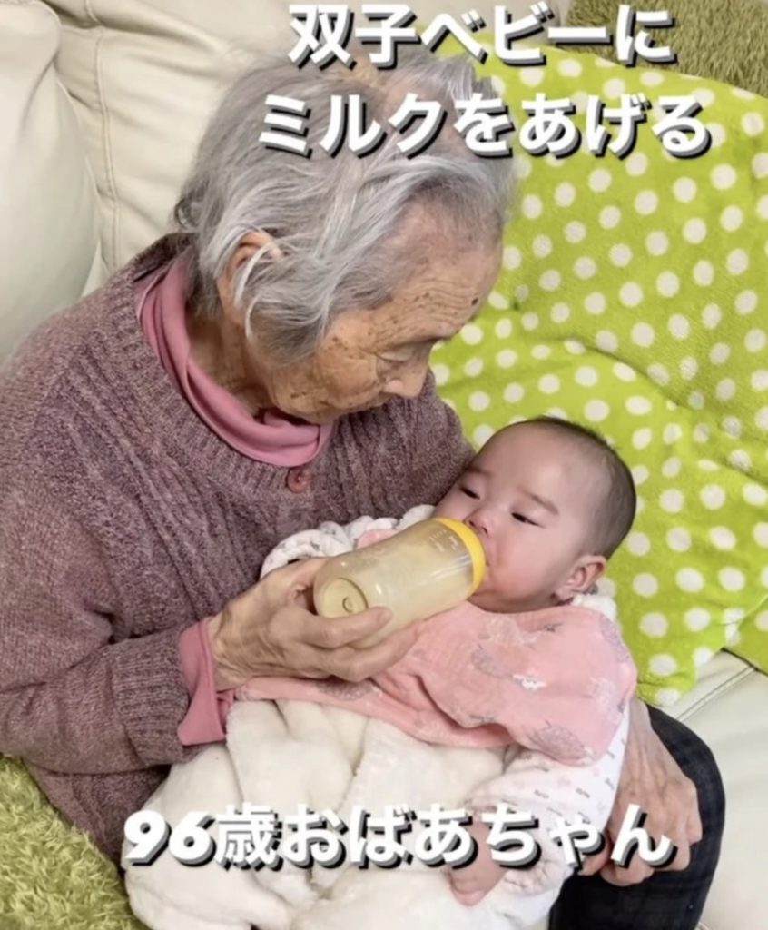 「96歳のおばあちゃんが元気でびっくり!赤ちゃんの抱っこができるってすごいです」