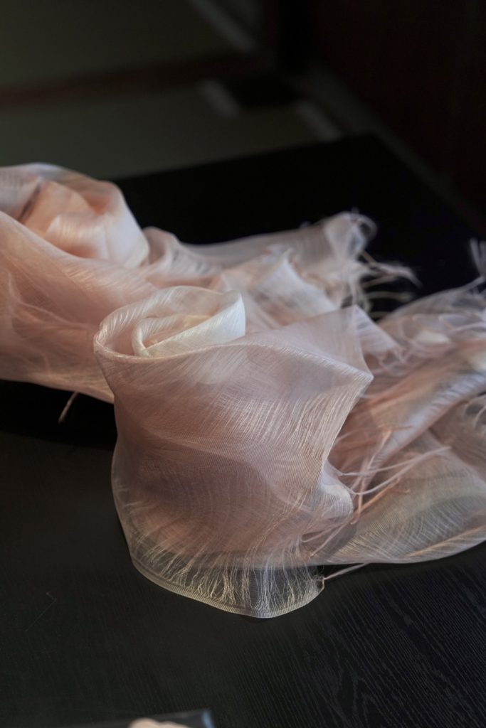 御室桜染のストール 色合いが繊細で優美さをかもし出す
