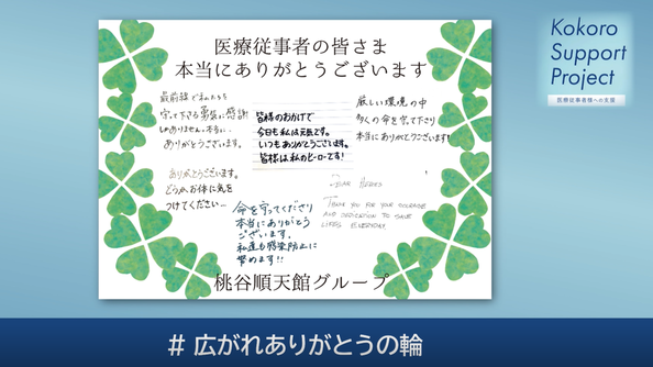 先駆的な取り組みで知られる桃谷順天館。これまでに、自然災害被災地への製品提供をはじめ、2020年には新型コロナウイルスと向き合う医療従事者を支援する「Kokoro Support Project(ココロ・サポート・プロジェクト)」を立ち上げ、当時不足していたフェイスシールドといった医療器具や製品を寄付。